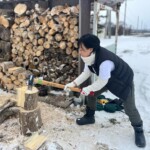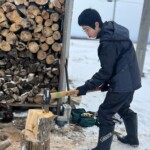 16日は比較的暖かくお天気も良かったので、みんなで外で薪割りも体験。